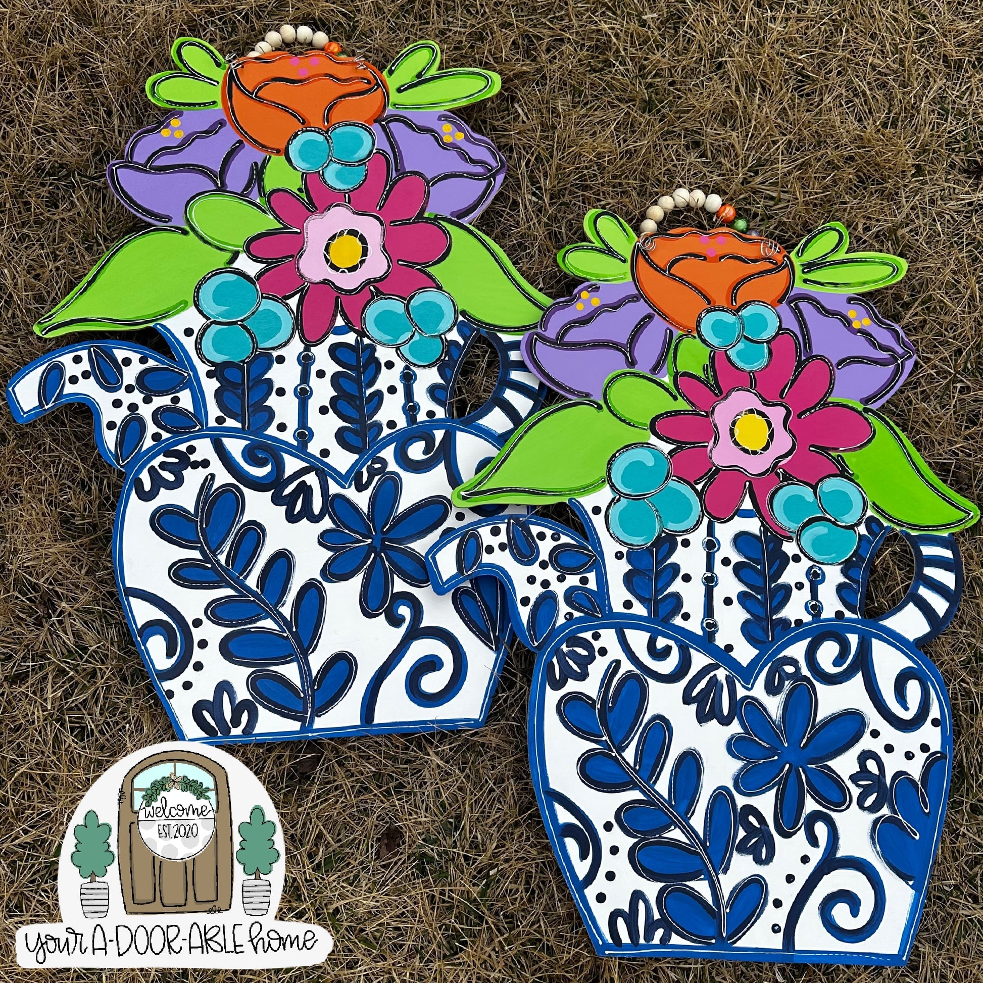 All door hangers are completely hand painted by my husband or I, so there could be very slight variations with what you see here and your actual door hanger that you receive.