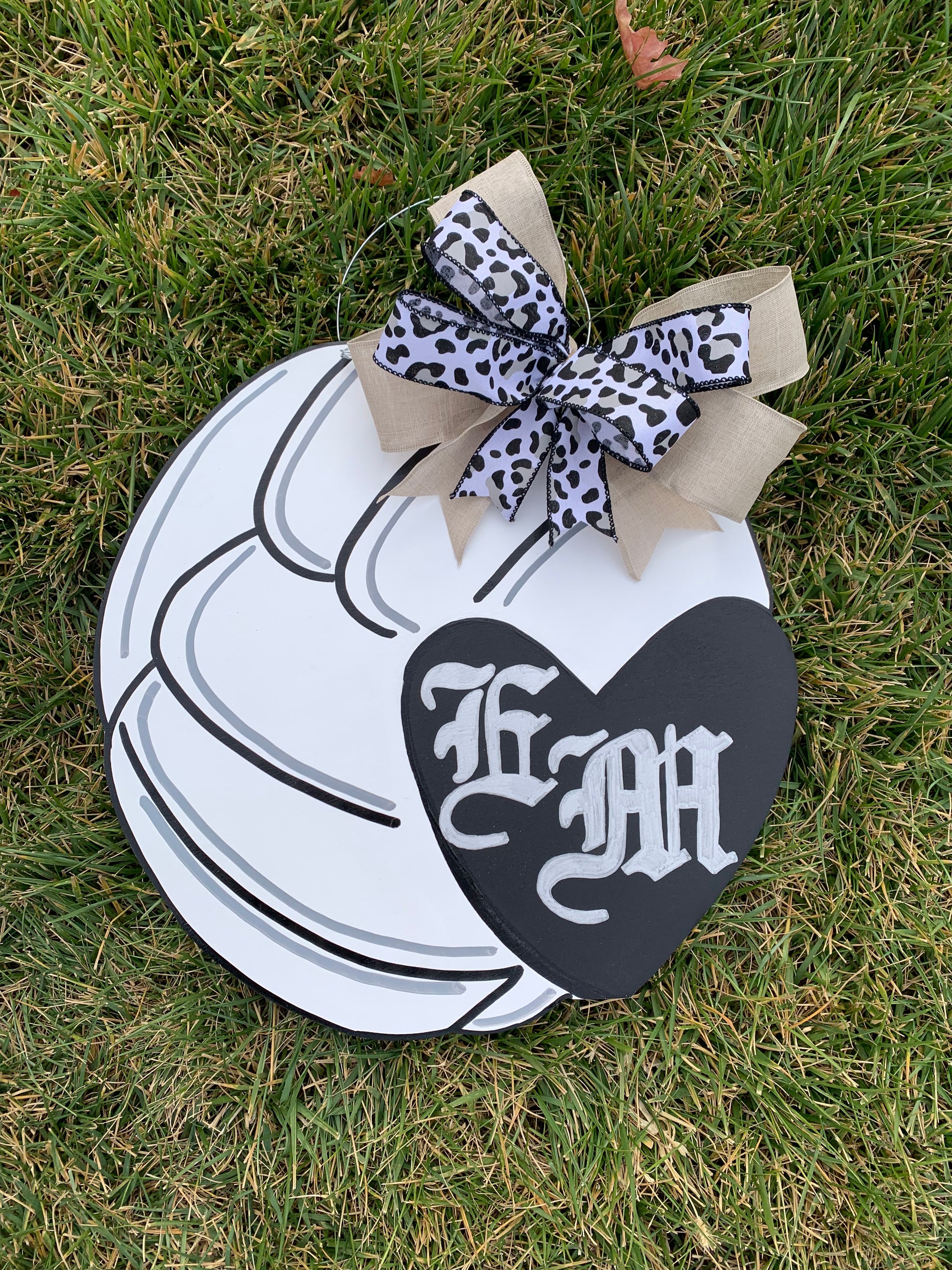 All door hangers are completely hand painted by my husband or I, so there could be very slight variations with what you see here and your actual door hanger that you receive.