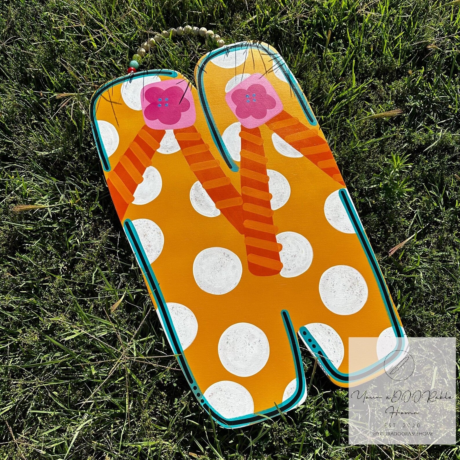 All door hangers are completely hand painted by my husband or I, so there could be very slight variations with what you see here and your actual door hanger that you receive.