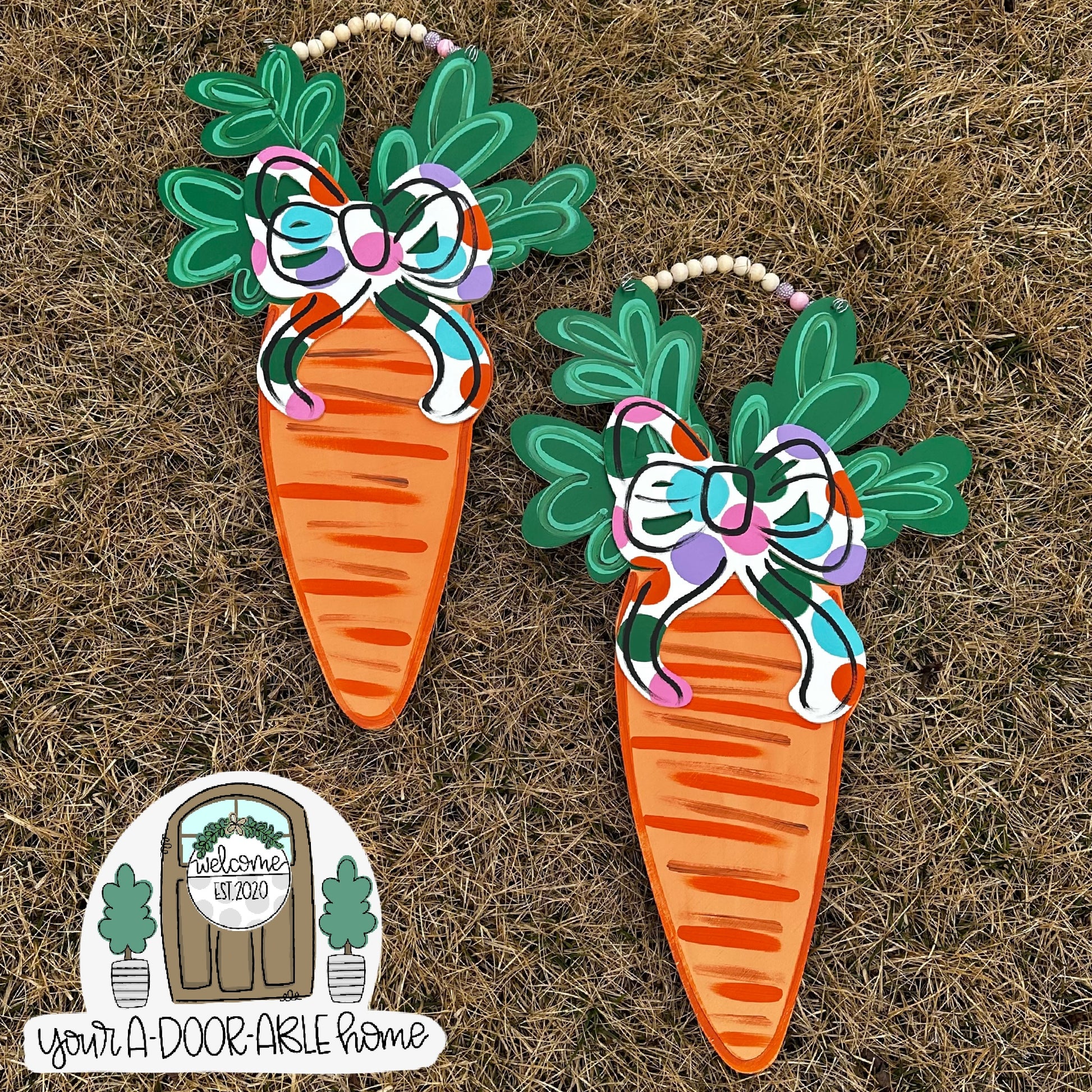 All door hangers are completely hand painted by my husband or I, so there could be very slight variations with what you see here and your actual door hanger that you receive.