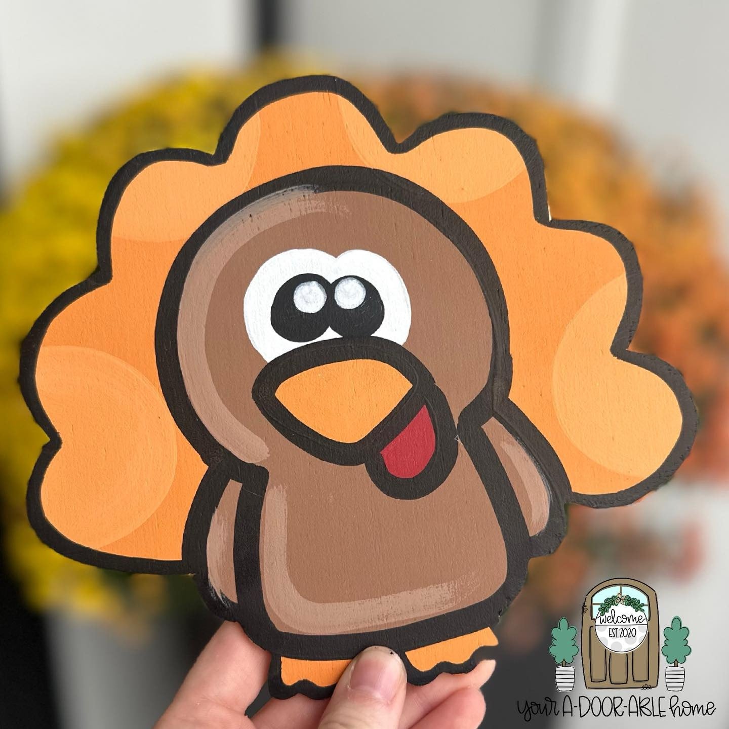 This attachment is cut out of 1/4 inch plywood and then painted with acrylic paint. Next we spray it with a clear sealer that helps prevent chipping, fading, and yellowing. We also use industrial strength velcro to adhere the attachment to the door hanger. All of our products are hand painted by me or my husband, so there could always be slight variations. This listing is made for the attachment only. There is a separate listing for the door hanger base.