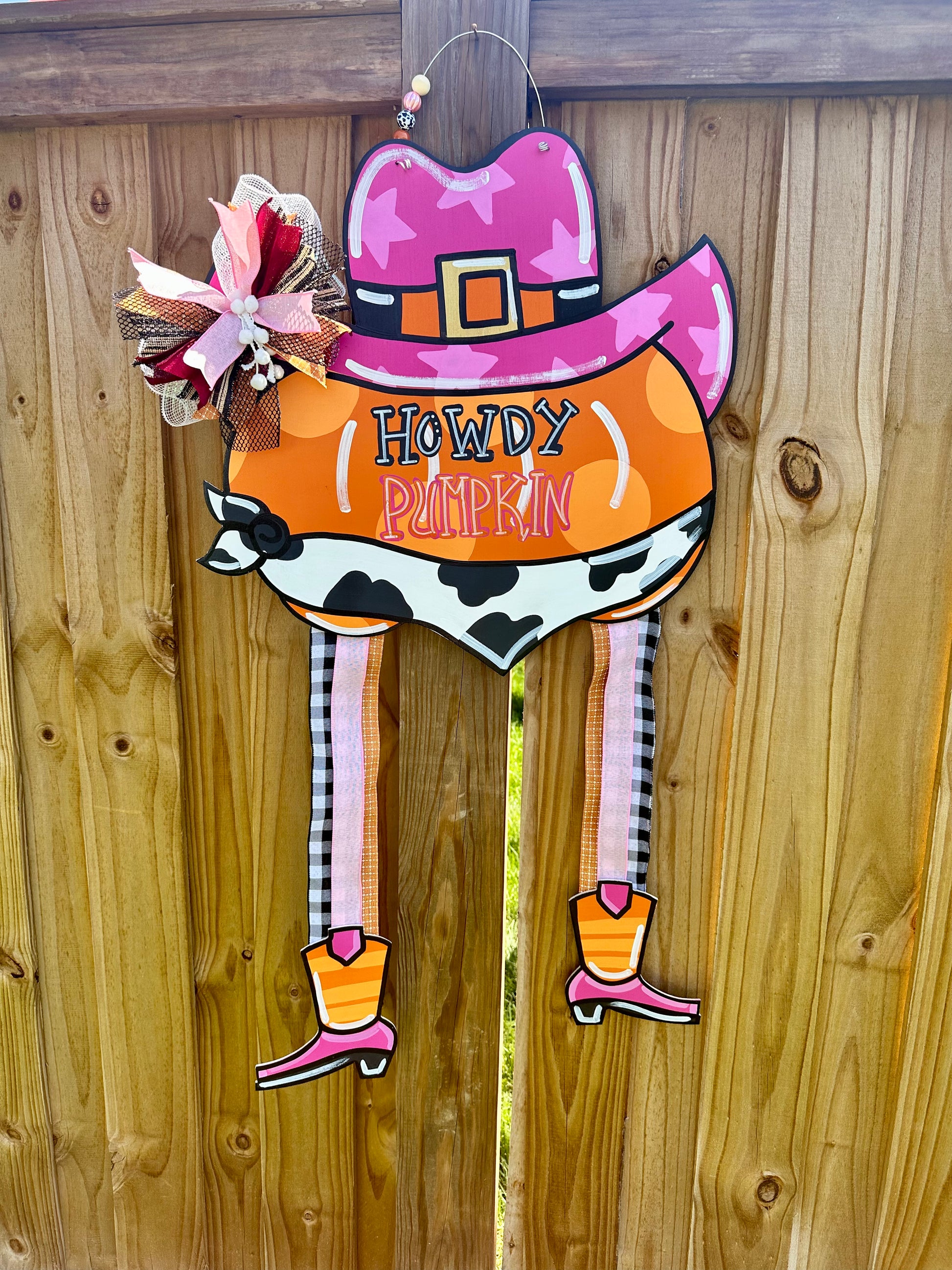 XL Ribbon Leg Howdy Pumpkin Door Hanger