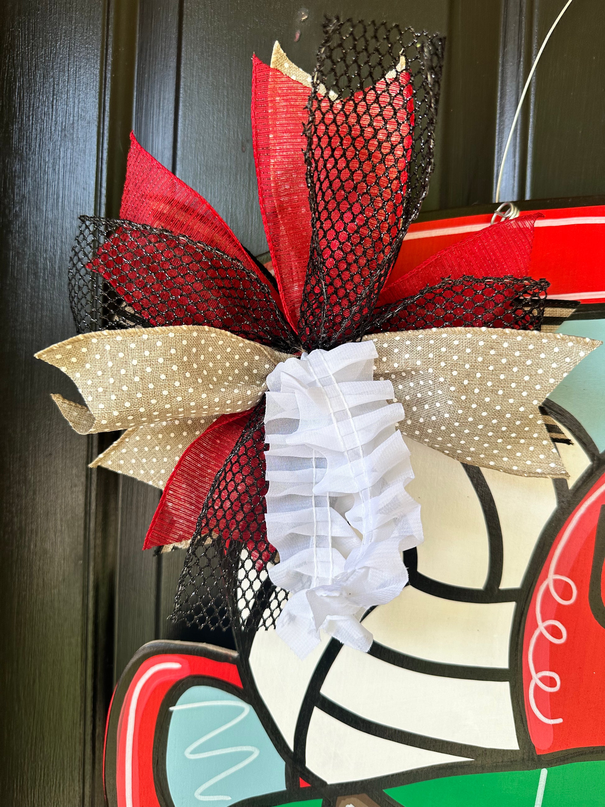 All door hangers are completely hand painted by my husband or I, so there could be very slight variations with what you see here and your actual door hanger that you receive.
