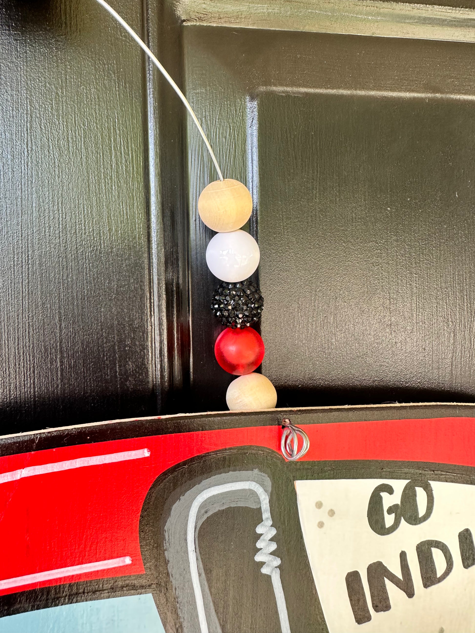 Our door hangers are cut out of 1/4 plywood with a jig saw. We then go in and sand all the edges to smooth them out. We will then paint with our acrylic paints, and add any final details. After that, we will go in and seal the door hanger to prevent chipping, fading, yellowing or peeling. We will then go in and add the wire to the door hanger and accessorize with a cute bow and or beads to match!