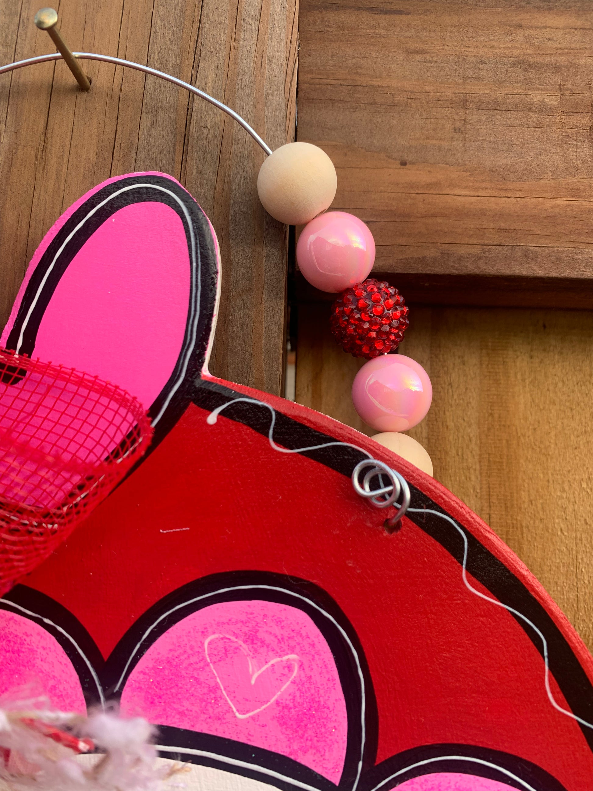 Our door hangers are cut out of 1/4 plywood with a jig saw. We then go in and sand all the edges to smooth them out. We will then paint with our acrylic paints, and add any final details. After that, we will go in and seal the door hanger to prevent chipping, fading, yellowing or peeling. We will then go in and add the wire to the door hanger and accessorize with a cute bow and or beads to match!